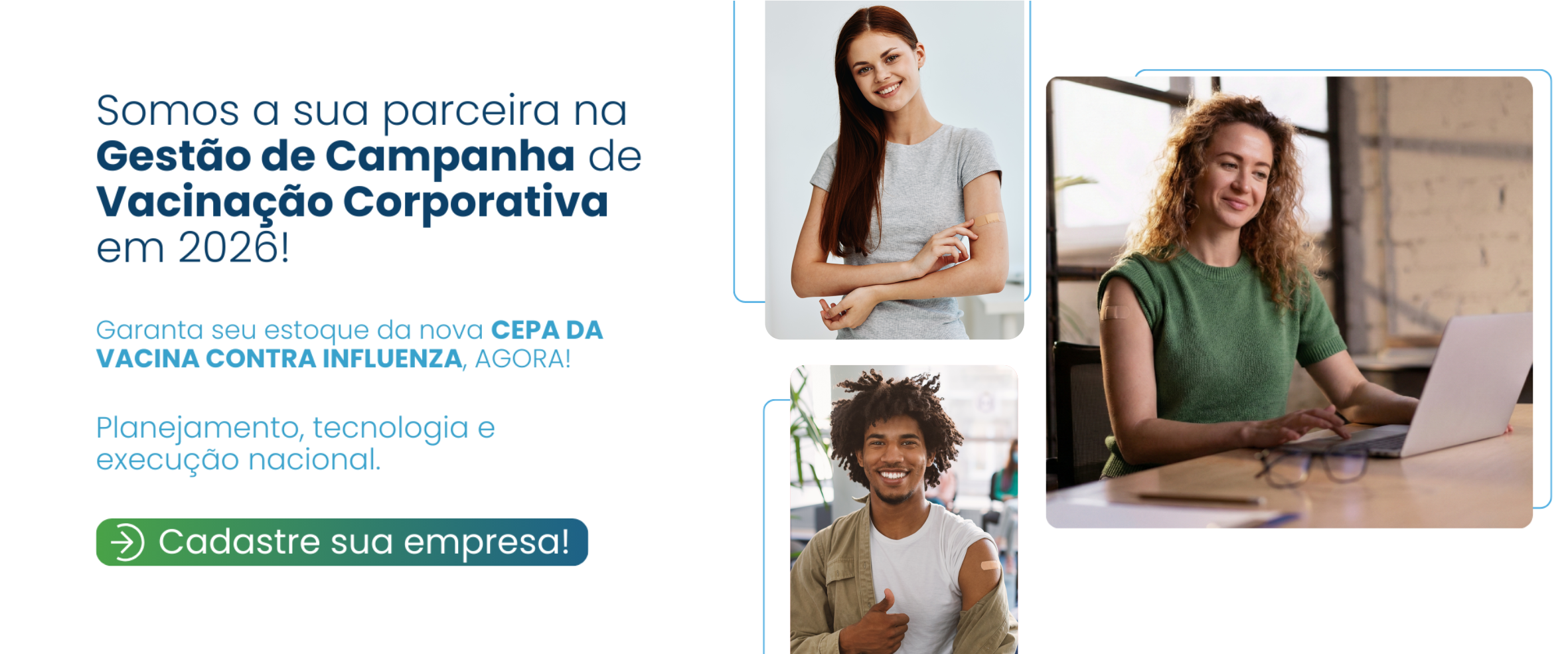 de campanhas de imunização corporativa. Somos reconhecidos pela atuação inovadora e pelo compromisso inegociável em promover a saúde, o bem-estar e a produtividade dos trabalhadores em todo o país.